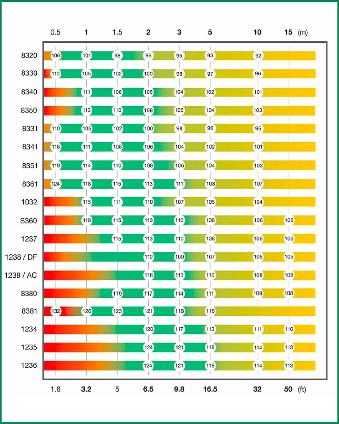 일반적인 우퍼 유닛사이즈 대비 최소 청취 거리