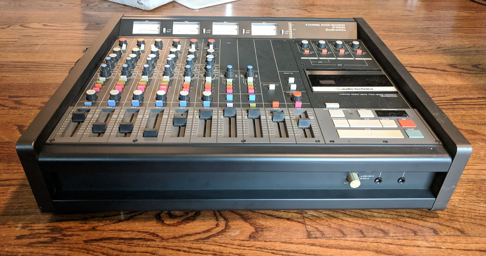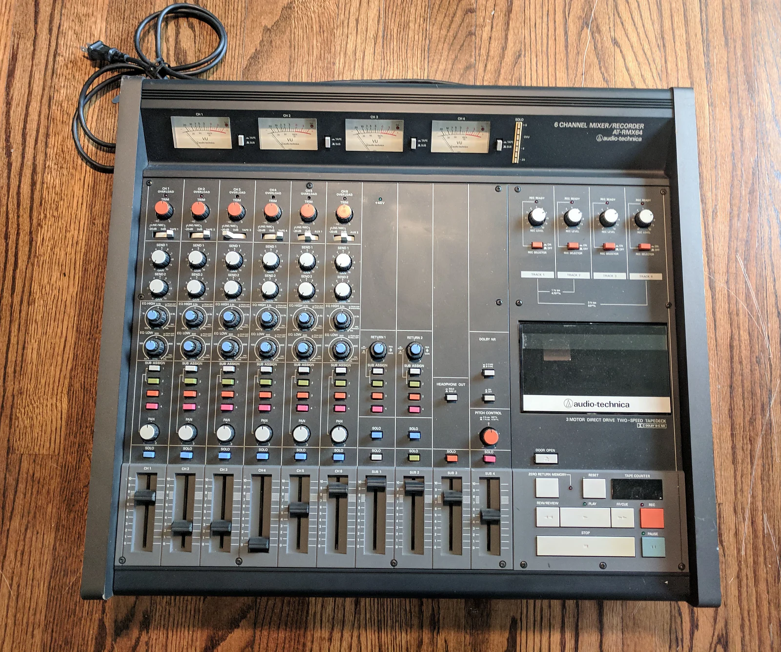 Audio Technica AT-RMX64는 1985년에 출시된 고급형 4-트랙 카세트 멀티트랙 레코더로, 6채널 믹서와 다양한 프로페셔널 기능을 탑재한 스튜디오용 장비입니다. 다소 무거운 22kg의 메탈 섀시로 제작되어 견고하며, 휴대성보다는 스튜디오 환경에 적합합니다.