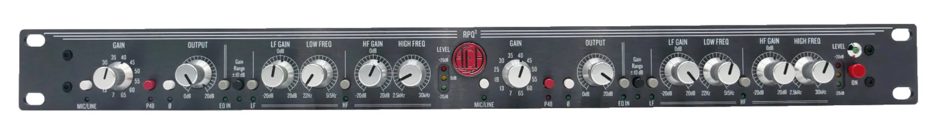 AEA RPQ3는 TRP3에 CurveShaper EQ를 추가한 듀얼 채널 1U 풀랙입니다. 85dB 고게인 + 68kΩ + LF/HF Boost/Cut(±20dB)으로 리본 마이크의 웜스와 투명도를 극대화한 프론트엔드입니다.