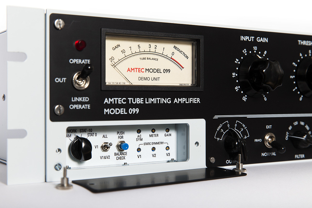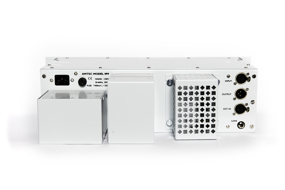 Amtec Model 099는 Fairchild 660의 동작 특성과 캐릭터를 재현한 올-튜브 리미팅 앰프(vari-mu 컴프레서)로, 폴란드 Lukasz Piotrowski가 15년간 개발한 하이엔드 모노 유닛입니다. 원조 6386 튜브 대신 ECC81/ECC82 조합으로 동일 곡선을 구현하며, 확장된 타임 콘스턴트와 현대 기능으로 스튜디오 활용성을 대폭 높였습니다.
