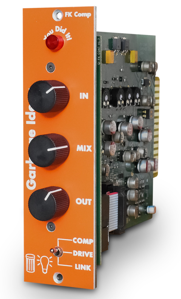 Garbage Ideas FK Comp는 Jason Kingsland(Vic Fischer)가 개발한 500시리즈 FET 컴프레서+클래스 A 라인앰프입니다. 'You Did It!' 15dB GR LED와 Comp/Drive 모드로 드럼/보컬에 공격적 새츄레이션을 제공하는 부티크 컬러 박스입니다.