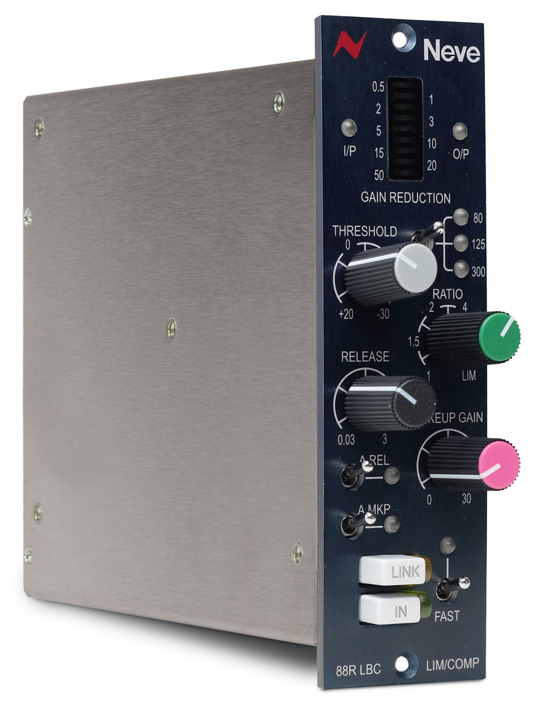Neve 88R LBC는 88RS 콘솔의 VCA 채널 컴프레서를 500시리즈로 구현한 모노 다이나믹 프로세서입니다. Adaptive Attack + Triple Auto Release로 모든 소스에 부드러운 제어를 제공하는 Burnley 핸드크래프트 명작입니다.