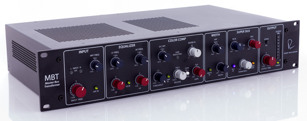 Rupert Neve Designs MBT(Master Bus Transformer)는 마스터버스 전용 2U 스테레오 프로세서입니다. HPF+2밴드 EQ+Color Comp+Width+Super Silk(레드/블루 동시 사용)로 완전한 버스 컬러링을 제공하는 RND의 최신 마스터링 무기입니다.