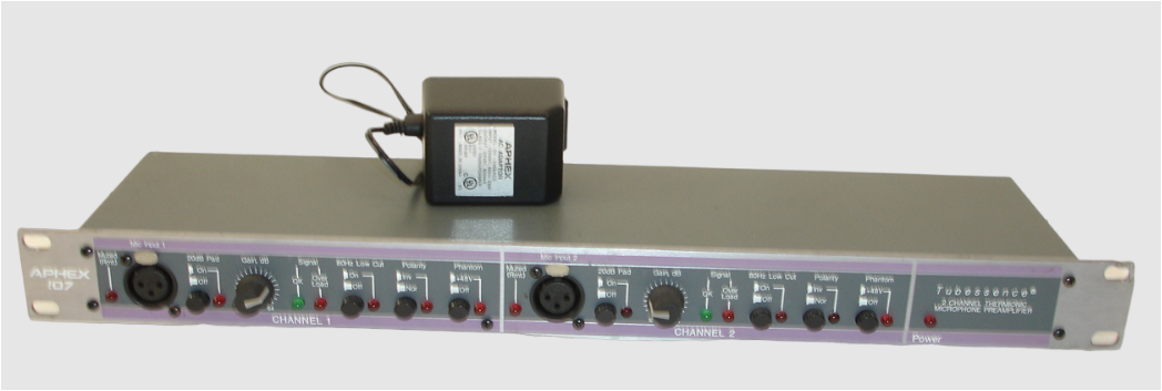 Aphex 107은 저전압 언더런 튜브 + 솔리드스테이트 하이브리드 듀얼 마이크 프리입니다. 'Tubessence' 기술로 튜브 수명 연장과 초저노이즈를 구현한 1U 프로젝트 스튜디오 튜브 워머입니다.