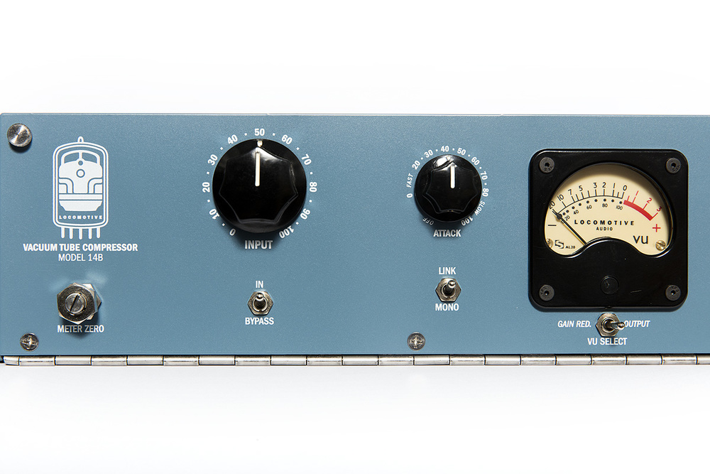 Locomotive Audio Model 14B는 UA 176 입력단 + Gates Sta-Level 출력단을 결합한 싱글 채널 Variable-Mu 튜브 컴프레서입니다. 1950년대 스타일의 2U 올-밸브 디자인으로 보컬에 최적화된 '브라이트+그리티' 사운드를 제공하는 핸드빌트 유닛입니다.[attached_file:1]